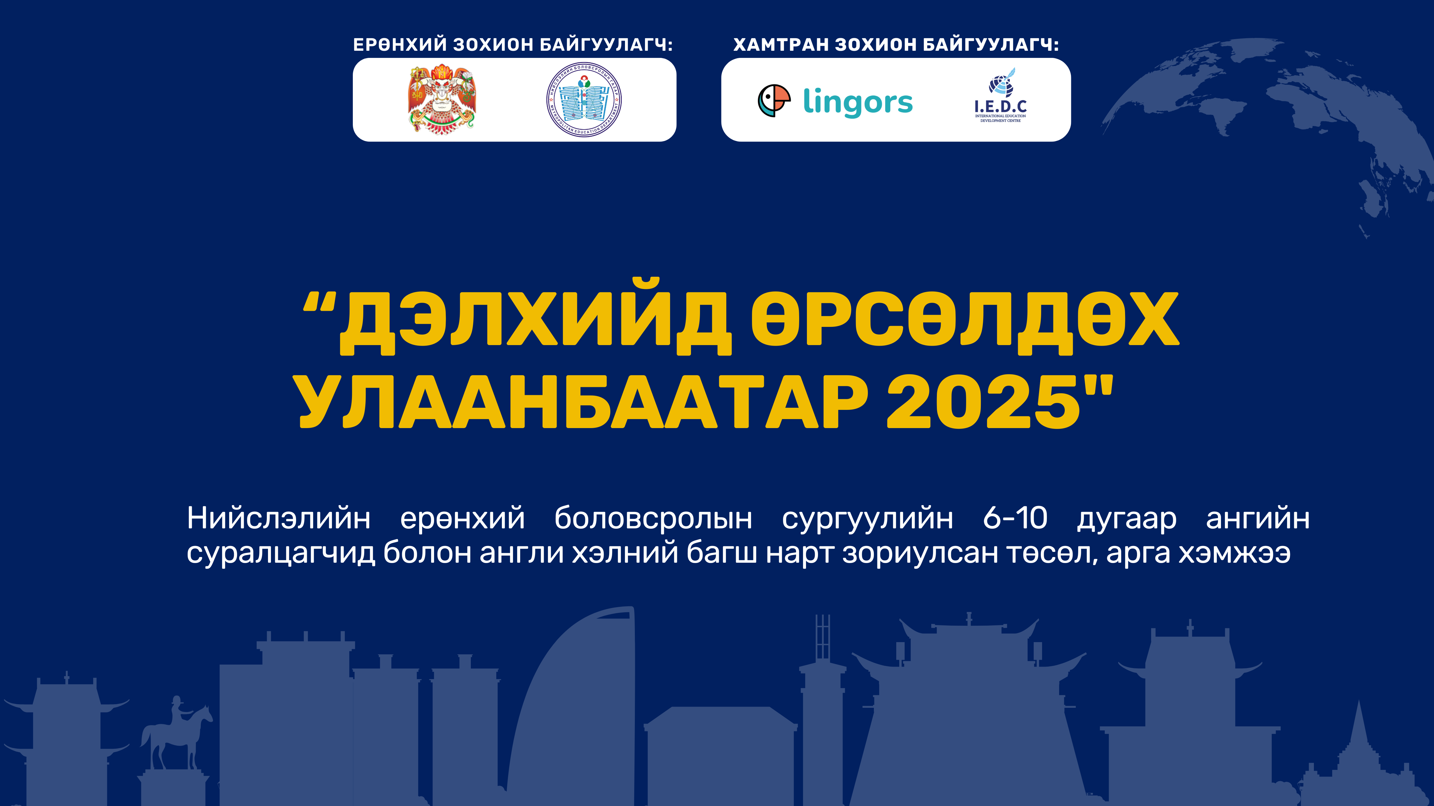 Нийслэлийн ерөнхий боловсролын сургуулийн 6-11 дүгээр ангийн сурагчид болон англи хэлний багш нарт зориулсан төсөл, арга хэмжээ