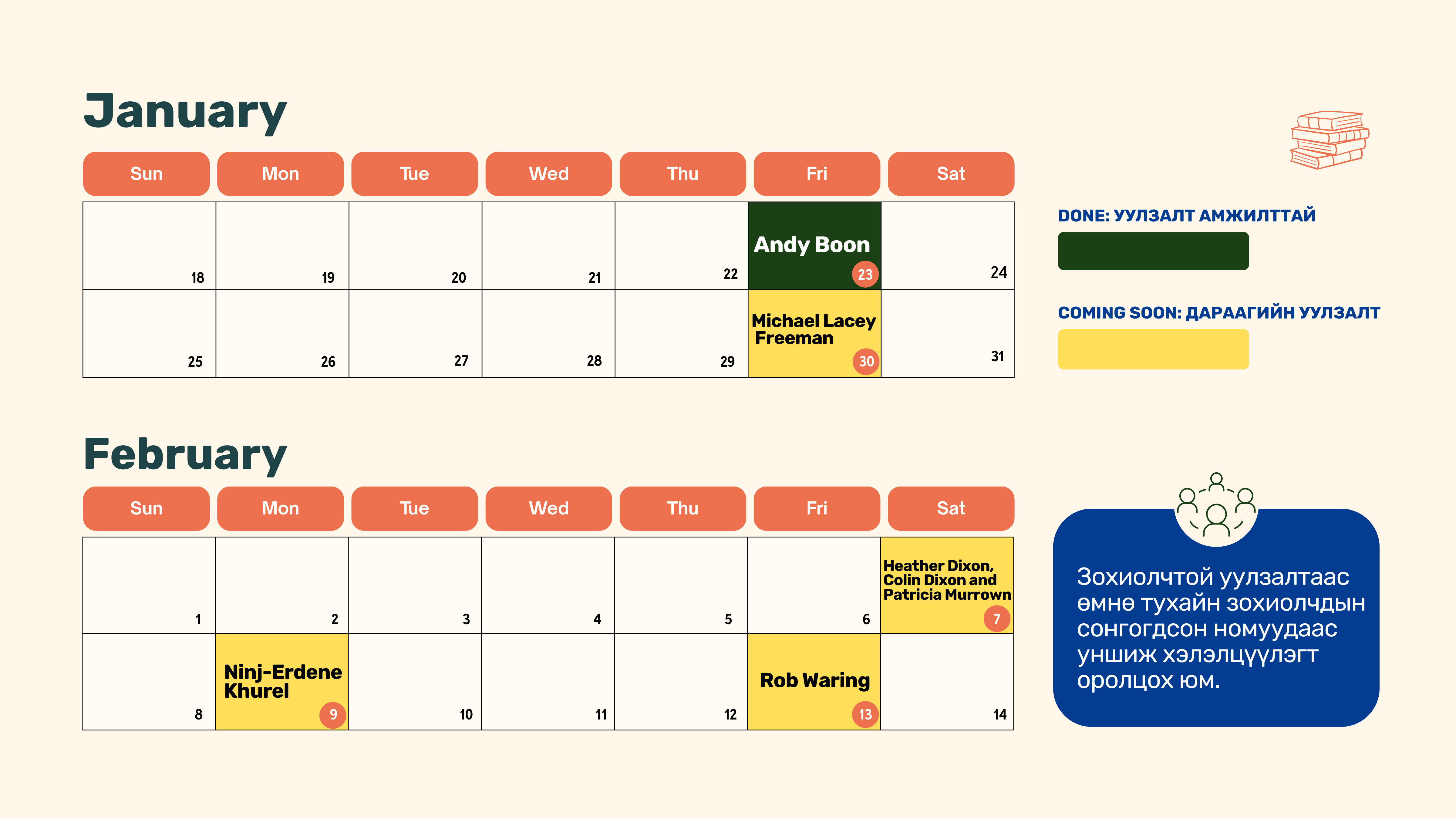 Зохиолчтой уулзалтын хуваарь